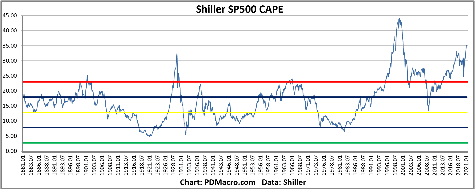 Next up we have the most loved and hated valuation tool of the last 15 years or so. People seem to love or hate the Shiller CAPE but I think they miss the boat. It is “A” tool, it has some predictive value, it shows you exactly what the calculation tells you it shows, and if you use it as your only tool you are strange at best and a fool at worst. I use all the tools in this post so clearly I am no absolutist. But you do you.